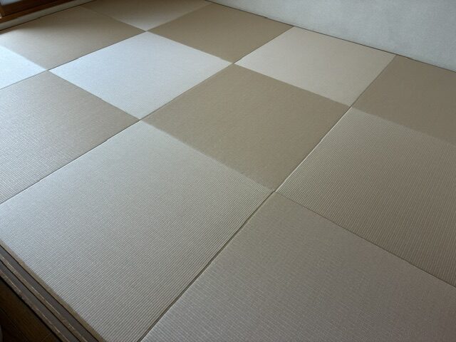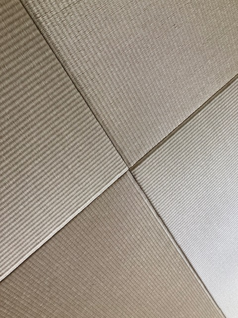 ダイケンさんの和紙表、清流灰桜色を使用してヘリ無し畳を新調させて頂きました。