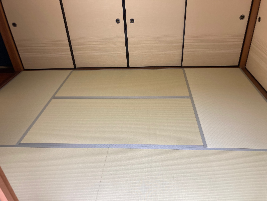 ダイケンさんの和紙表、銀白若草色を使用して畳の表替を一日仕上をさせて頂きました。